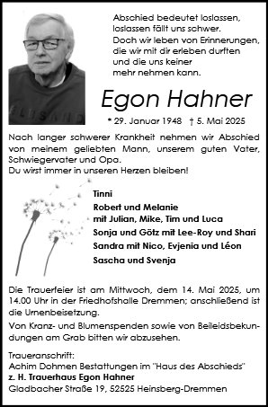 Anzeigen von Achim Dohmen Bestattungen GmbH iG