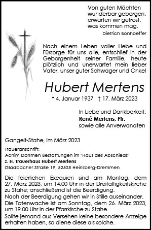 Anzeigen von Achim Dohmen Bestattungen GmbH iG