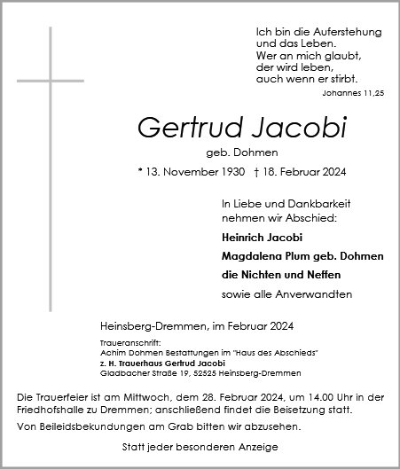 Anzeigen von Achim Dohmen Bestattungen GmbH iG