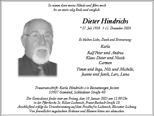 Anzeigen von Dieter Joisten Bestattungsinstitut