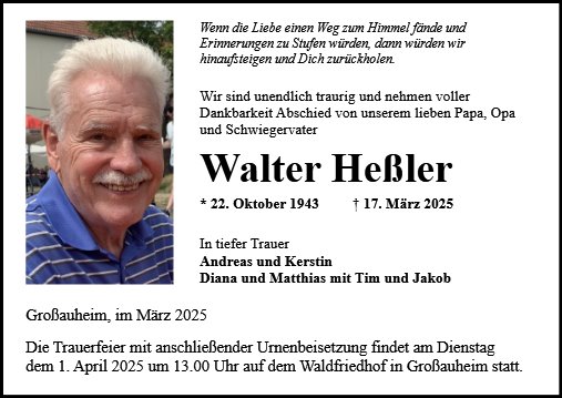 Anzeigen von Bestattungsunternehmen Heinz Schaack
