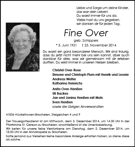 Anzeigen von Achim Dohmen Bestattungen GmbH iG