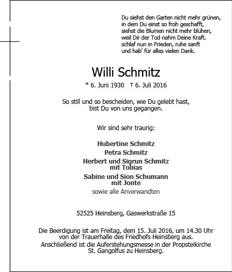 Anzeigen von Achim Dohmen Bestattungen GmbH iG