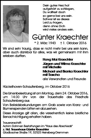 Anzeigen von Achim Dohmen Bestattungen GmbH iG
