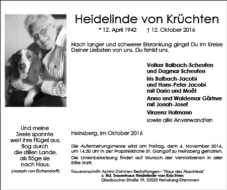 Anzeigen von Achim Dohmen Bestattungen GmbH iG