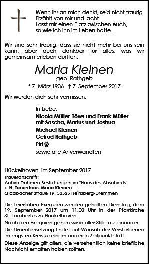 Anzeigen von Achim Dohmen Bestattungen GmbH iG