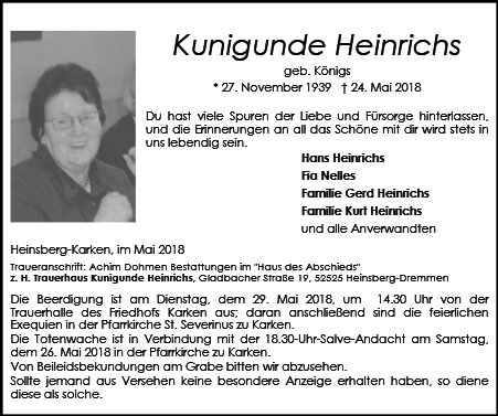 Anzeigen von Achim Dohmen Bestattungen GmbH iG
