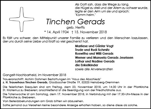 Anzeigen von Achim Dohmen Bestattungen GmbH iG