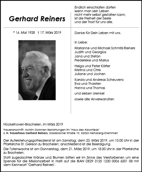 Anzeigen von Achim Dohmen Bestattungen GmbH iG