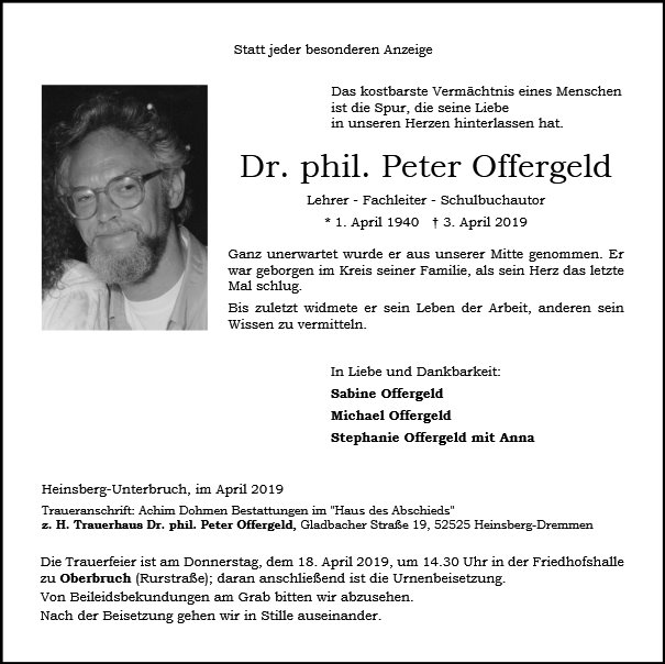 Anzeigen von Achim Dohmen Bestattungen GmbH iG