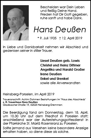 Anzeigen von Achim Dohmen Bestattungen GmbH iG