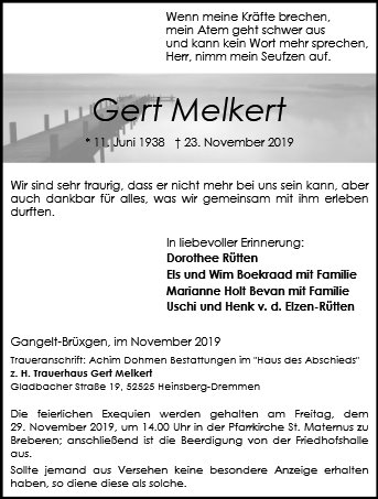 Anzeigen von Achim Dohmen Bestattungen GmbH iG