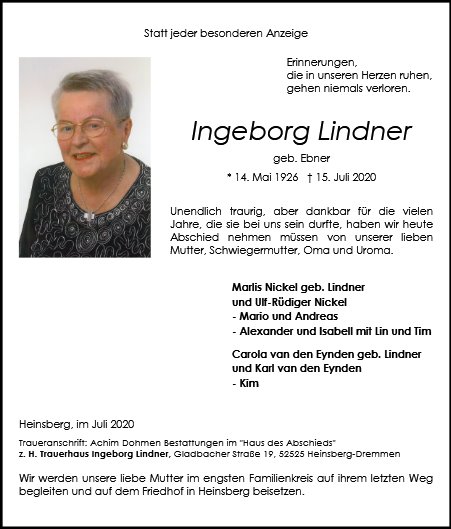Anzeigen von Achim Dohmen Bestattungen GmbH iG