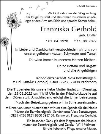 Anzeigen von Voss Bestattungen